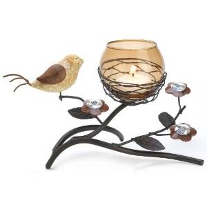 8. Gifts & Decor Partridge Bird Nest Branch Motif Tealight Candle Holder